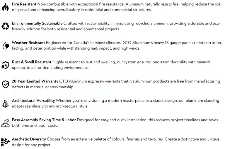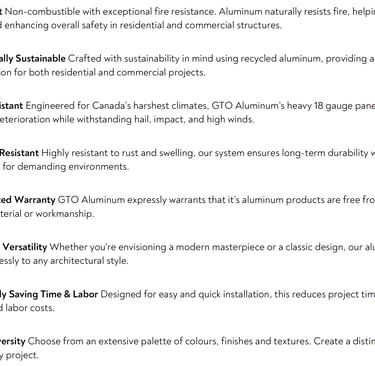 GTO Aluminum Canada is a prominent supplier in Canada offering top-tier aluminum architectural solutions, focusing on high-performance cladding, siding, soffit, fascia, and customized aluminum systems for both residential and commercial projects. Our products are designed for longevity, accuracy, and contemporary aesthetics, showcasing advanced multi-coat finishing systems that provide outstanding color stability, corrosion resistance, and prolonged performance in Canada’s challenging climate. Emphasizing quality, sustainability, and creative design, GTO Aluminum Canada collaborates closely with architects, designers, and builders to provide dependable, visually appealing solutions for modern architecture throughout the nation.